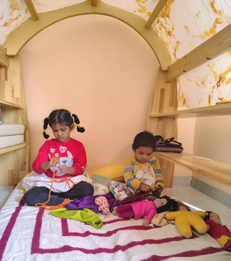 Thraya classrooms are filled with natural materials to create a warm, inviting atmosphere that feels nurturing rather than overstimulating. Contrary to the bright, synthetic materials, such surroundings support emotional steadiness, allowing children to engage in learning without distraction.
