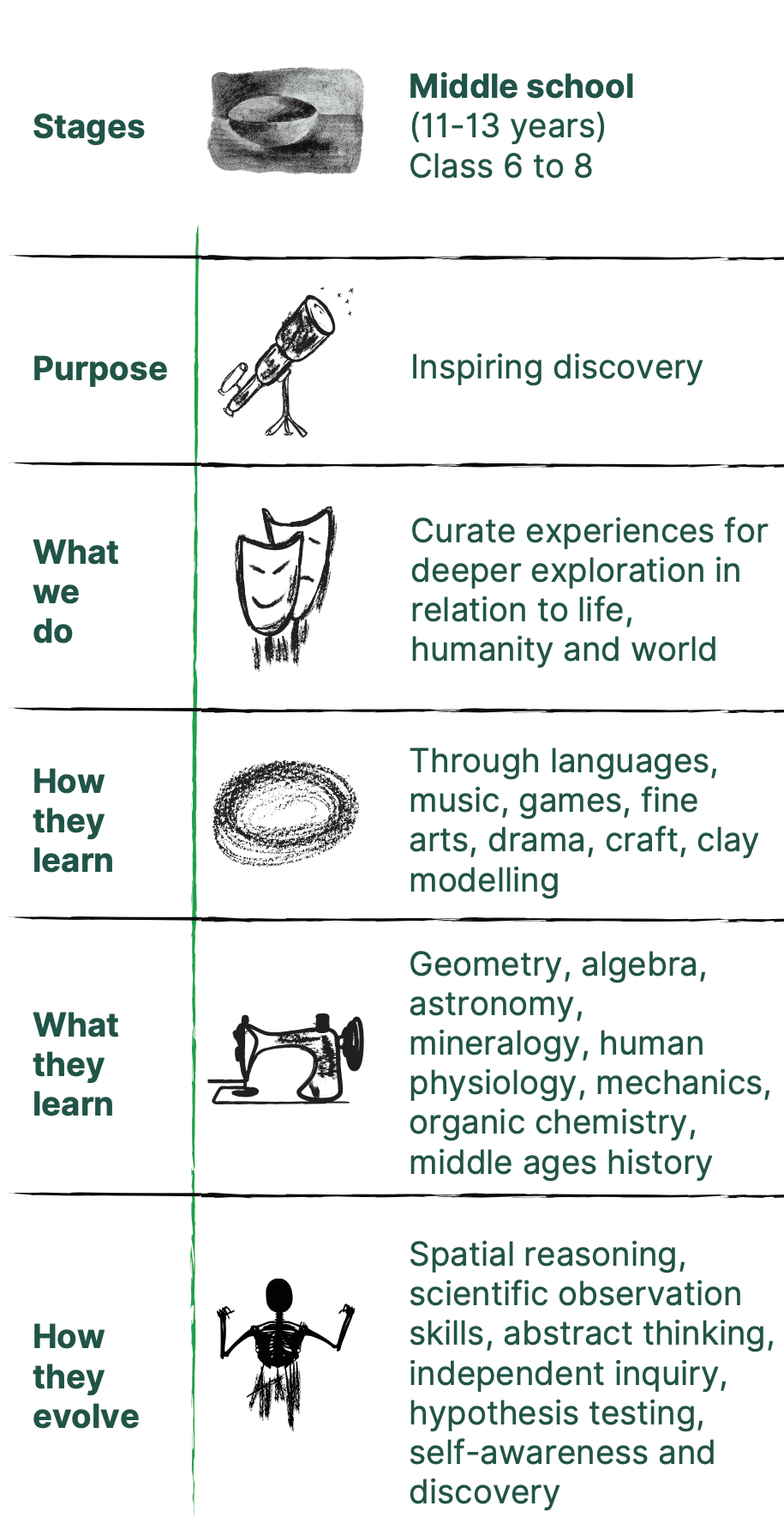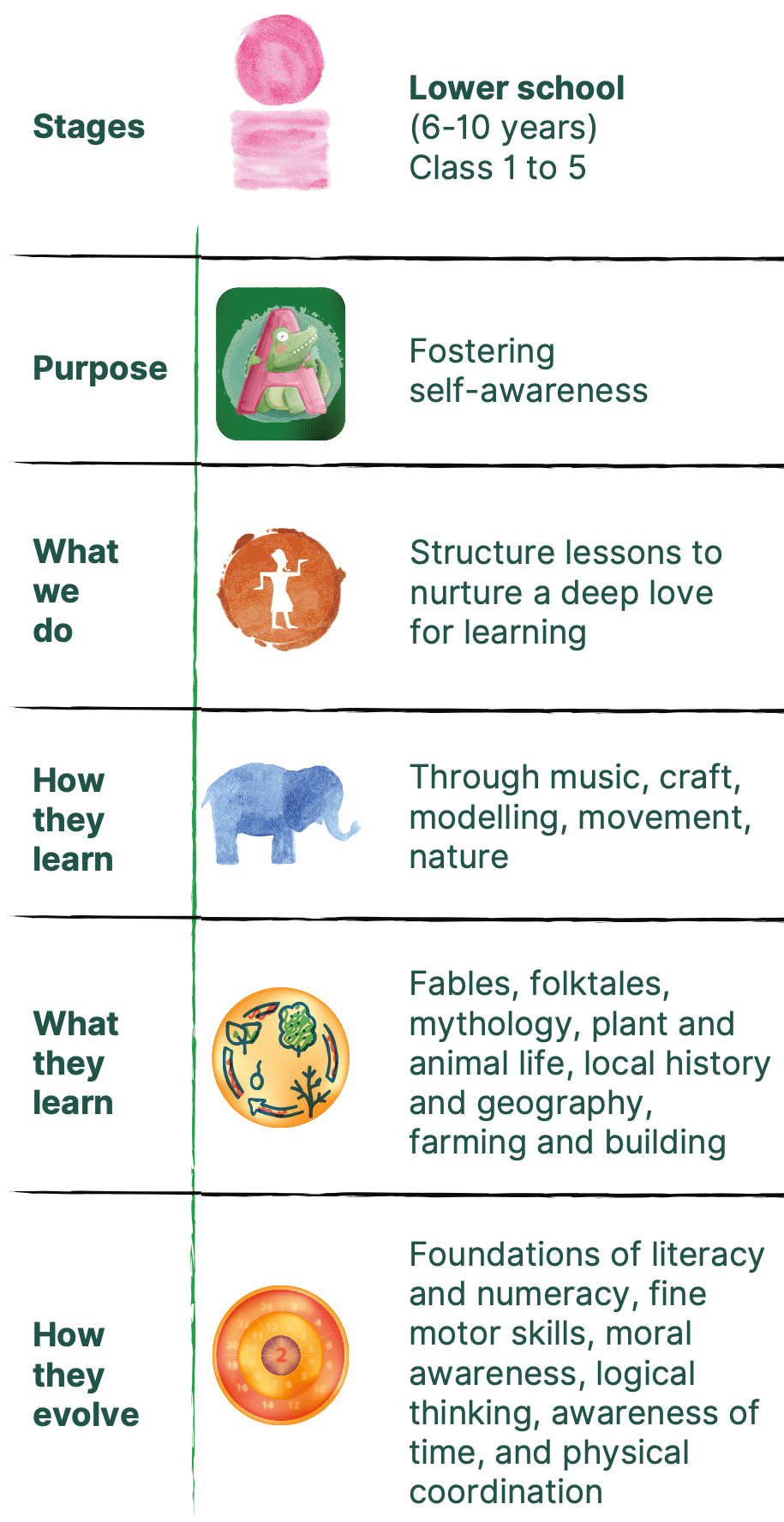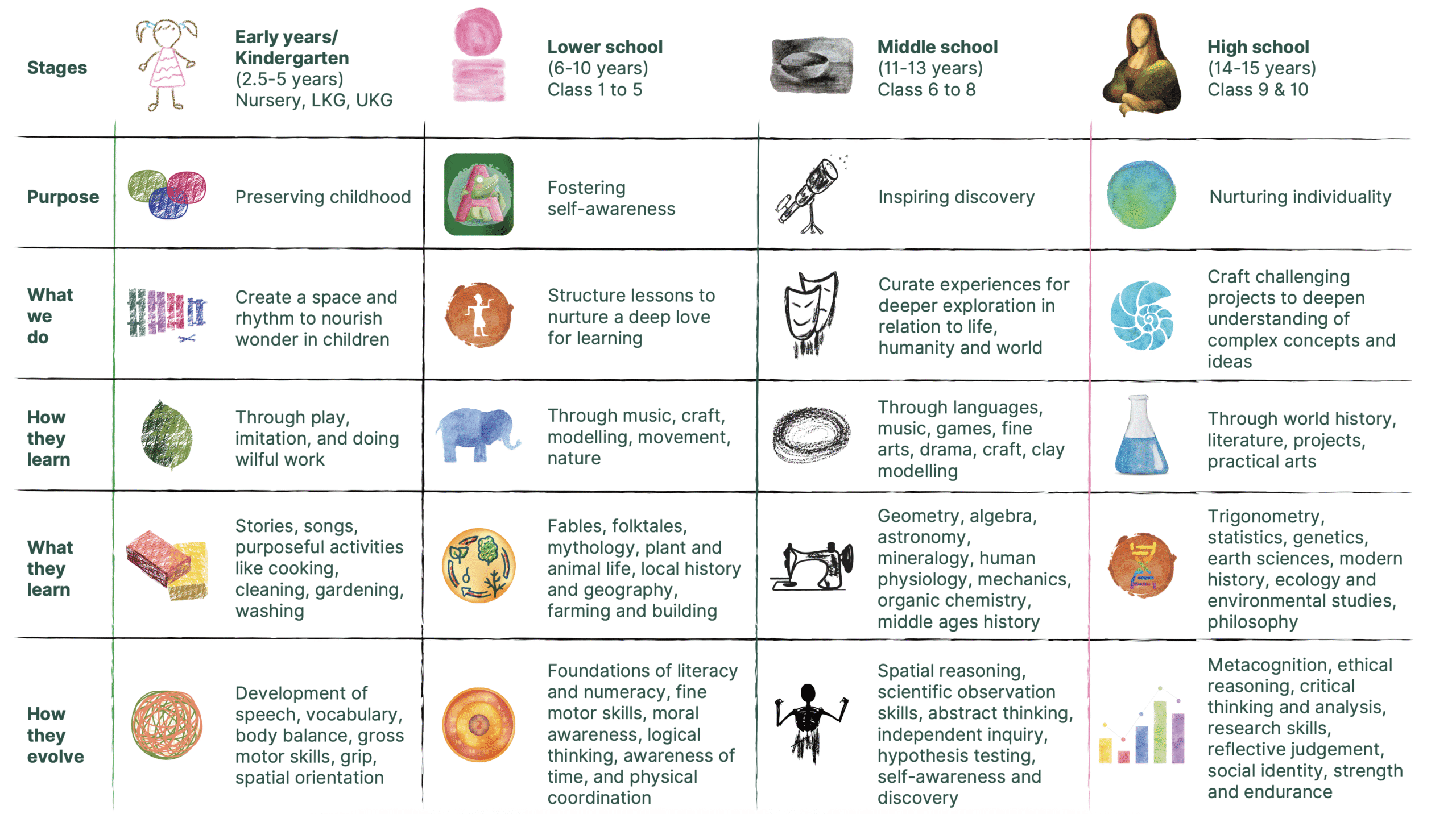 Our curriculum is thoughtfully attuned to the natural rhythm of a child’s growth and development. So, in the early years, we nourish young minds with the wonder of fairy tales that progresses to fables and mythology to biographies and philosophy. Farm work done in the lower school transitions into practical projects like land survey in the higher grades.
